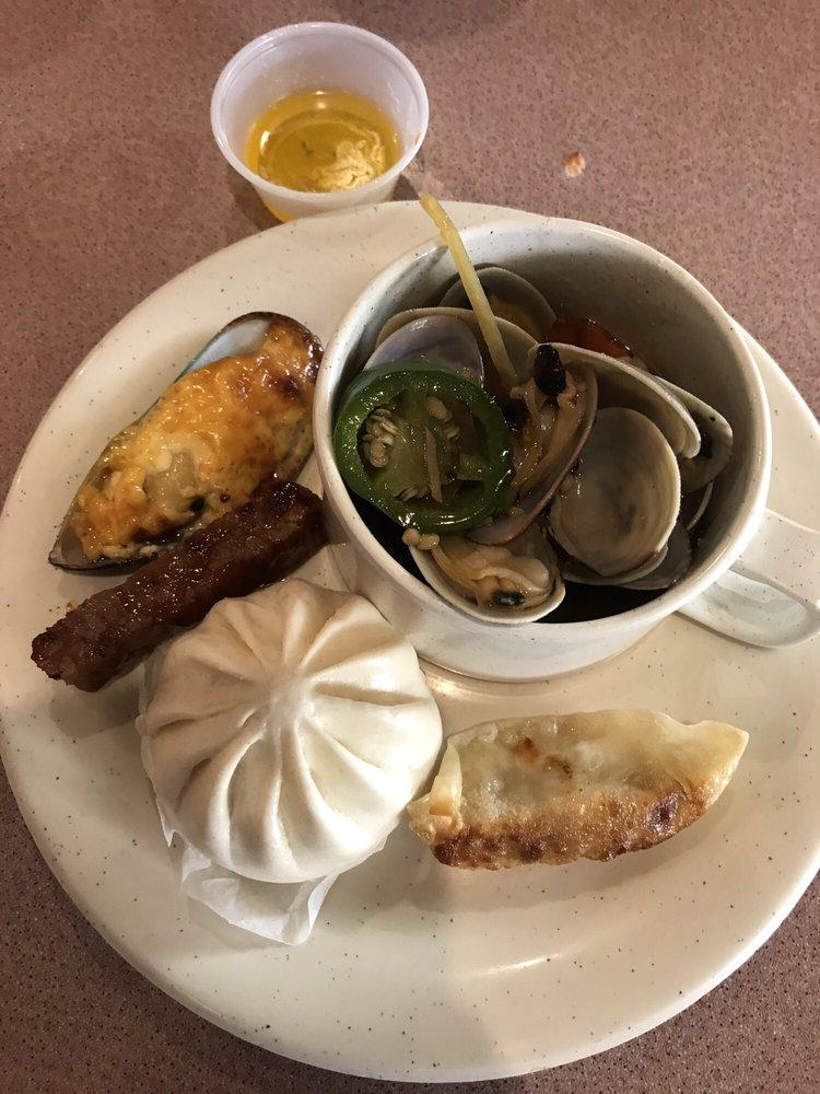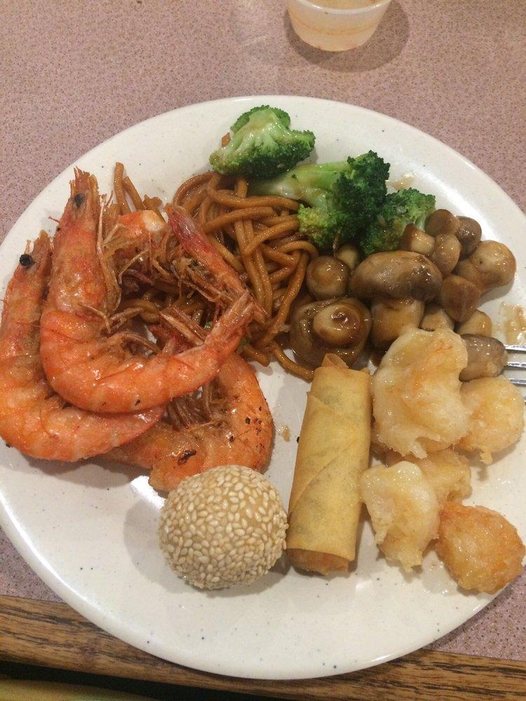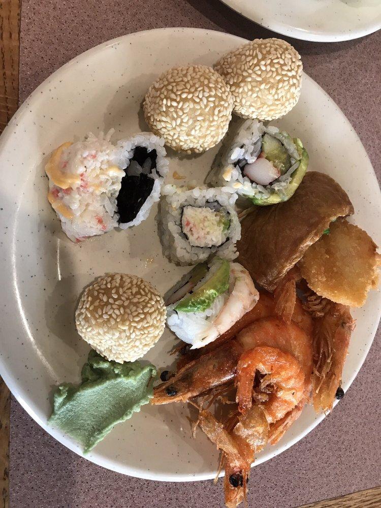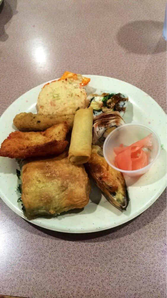 Waiter was attentive. Food is okay but can be improved. The hot food was cold. Steaks tips were too hard to chew. The teppanyaki was good. It is your regular buffet. Ice cream and the almond cookies were very good.